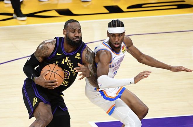 就说上赛季的比赛表现,詹姆斯面对雷霆那可真是毫不留情,4月份连打两场雷霆,詹皇一场28+7,一场19+7,这个事就发生在今年,就在半年以前。当时詹姆斯刚刚和总冠军雷霆队打过2场,场均能够拿下23.5分5篮板5助攻,就这个数据,你说他打雷霆打不过吗?如果有他在,雷霆不可能随便欺负湖人锋线。